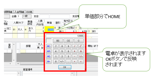 予約詳細画面の単価部分でHOMEキーを押してみてください。
